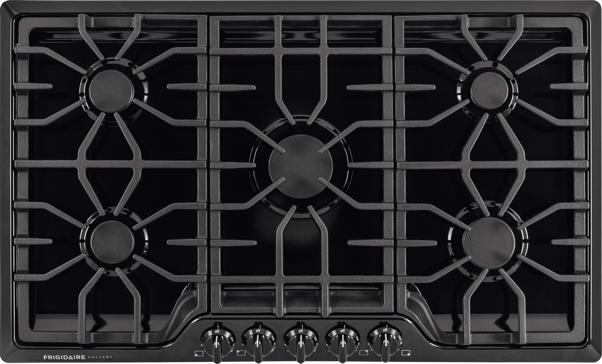 The Frigidaire Gallery 36 in. Drop-In Gas Cooktop has 5 sealed gas burners including an 18,000 BTU Quick Boil Burner that boils water faster and a Simmer Burner that is perfect for delicate foods. It also has dishwasher-safe, continuous grates that make it easy to move heavy pots and pans between burners without lifting. The all-new design features angled front controls that are easy to use and seamless recessed burners.Read More
