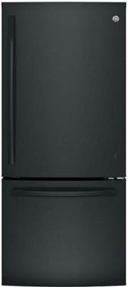 GE® Series 20.8 Cu. Ft. Bottom Freezer Refrigerator-Black with LED lighting and 2 clear drawersRead More